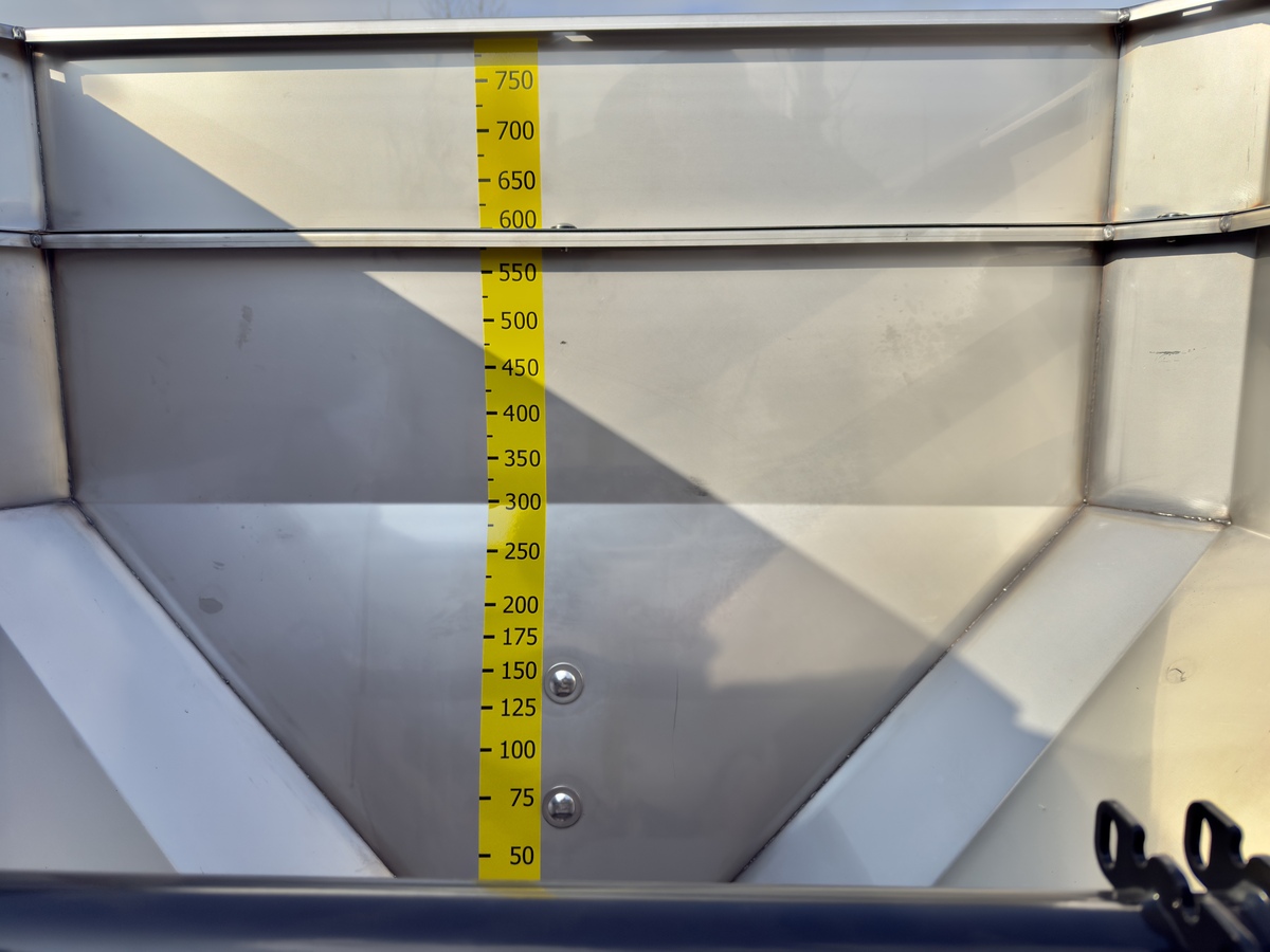 De standaard inhoud van de Eurospand strooier is 600 Liter maar kan door middel van opzet randen uitgebreid worden. 1 opzetrand vergroot de inhoud met 200 liter (dus 800) met nog een extra opzetrand is de inhoud zelfs uit te breiden tot 1000 liter.